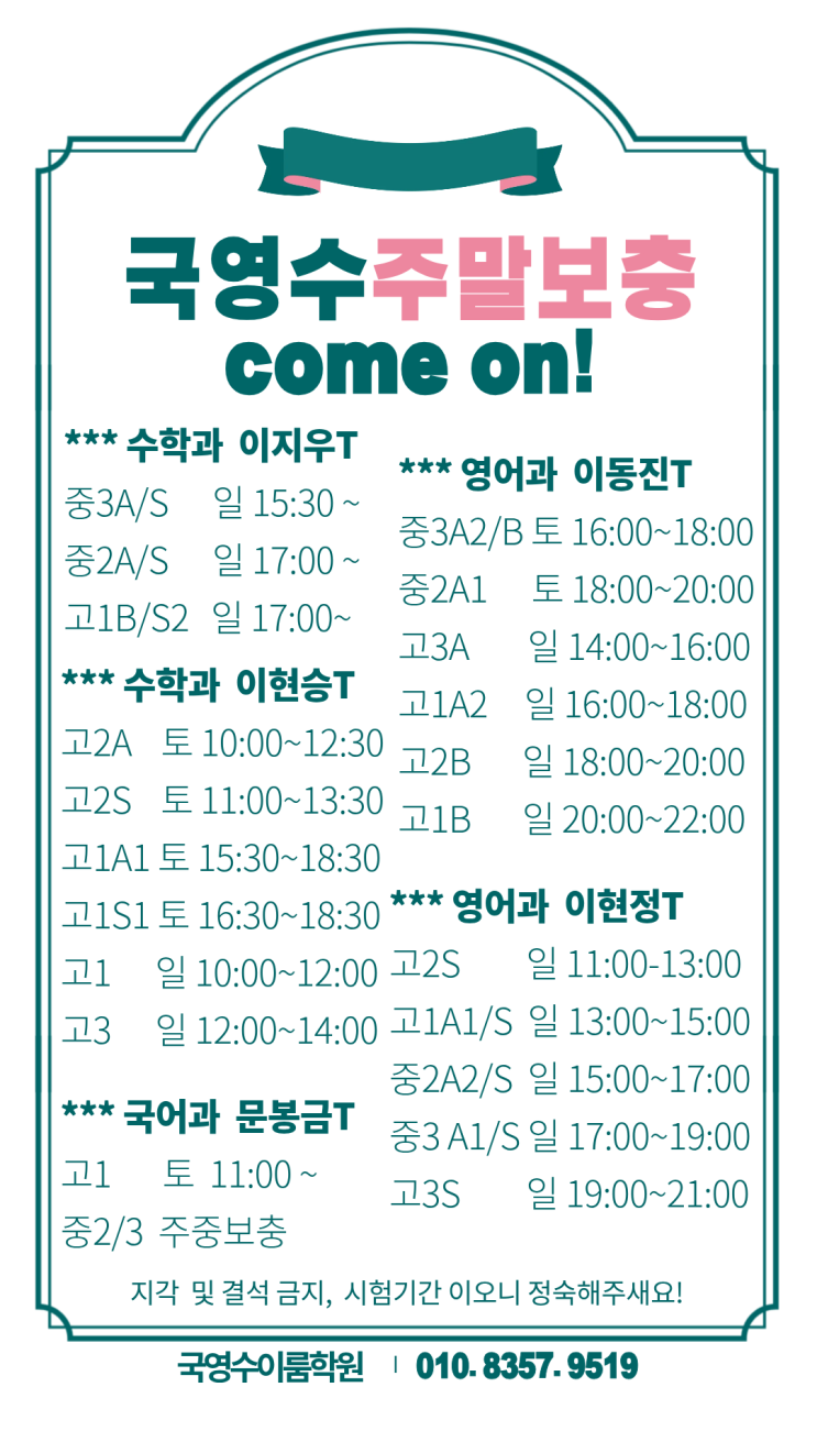[국영수] 국영수가 강한 학원, 슬기로운 지필고사 준비 !!!