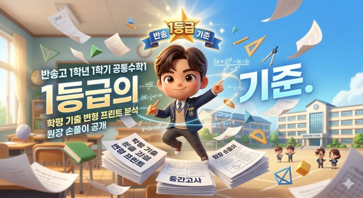 [반송고 1학년 1학기 공통수학1 중간고사] '학평 기출 변형 프린트' 분석, 1등급의 기준. (원장 손풀이 공개) [결론부터 말씀드립니다] 이번 반송고 1학년 1학기 공통수학1 중간고사의 1등급 컷은 '학교 배부 프린트(모의고사 기출 모음)의 논리적 체화'에 달려있습니다. 동탄강한학원은 시중 해설지의 생략된 논리적 비약을 배제하고, 실전에서 학생이 스스로 떠올려야 할 '사고의 순서'를 원장이 직접 손풀이로 분석하여 지도합니다. 단순 암기가 아닌, 출제자의 의도와 변형 포인트까지 짚어내는 객관적인 분석 데이터를 아래에 공개합니다. PART 1. 반송고 1학년 중간고사 출제 핵심 요약 이번에 학교에서 배....... <img src="https://blogthumb.pstatic.net/MjAyNjA0MTVfMTQy/MDAxNzc2MjU0ODQwMDc1.mOmbknzSaO8j8WCfVdPPsRcL1GFNWGzg0d3VZv8PhpQg.IQgrY1uKTDdY6lDsdGK1XTNT25C7Bq_vFQryRP9FRwQg.JPEG/ecda5a5e-cc33-4a95-95d1-544fe958b996.jpg?type=s3" />
