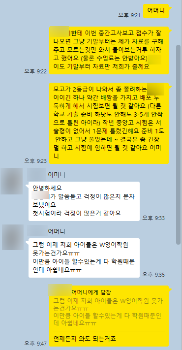 안녕하세요 20페이지 영어학원입니다. 중간고사가 얼마 남지 않은 지금, 학생들과 어머님 모두가 매우 긴장되는 시점일겁니다. 저도 제가 너무 긴장되어 그런지 거의 3주동안 수액을 맞아가면서까지 우리 아이들의 중간고사를 함께 버텨나가고 있습니다. 우리 아이들의 성적에 조금이라도 도움이 되기 위해, 틈틈히 클리닉 관리로 수업 외에 또 학원으로 나오게 하여 관리 들어가주고, 그것도 부족하면 ZOOM 화상으로 조금 더 시키면서까지 관리를 하였습니다. 그러다보니 몸이 남아나질 않더라구요 하하 ㅠㅠ 하.지.만, 우리 아이들의 성적에 조금이라도 도움이 되기 위해서라면, 끝까지 최선을 다할 것을 약속했기에, 제 몸이 망가지는 한이 있....... <img src="https://blogthumb.pstatic.net/MjAyNjA0MjBfMjc5/MDAxNzc2NjEyMzkzMDY2.wwctTVCV5EGFfLbex5GOLDEwCskICAvh2arf1bLQwUwg.UfFeL-H6jjs1IBseth17V4CcVs9p7FWJiVAIBzz20Hkg.PNG/image.png?type=s3" />