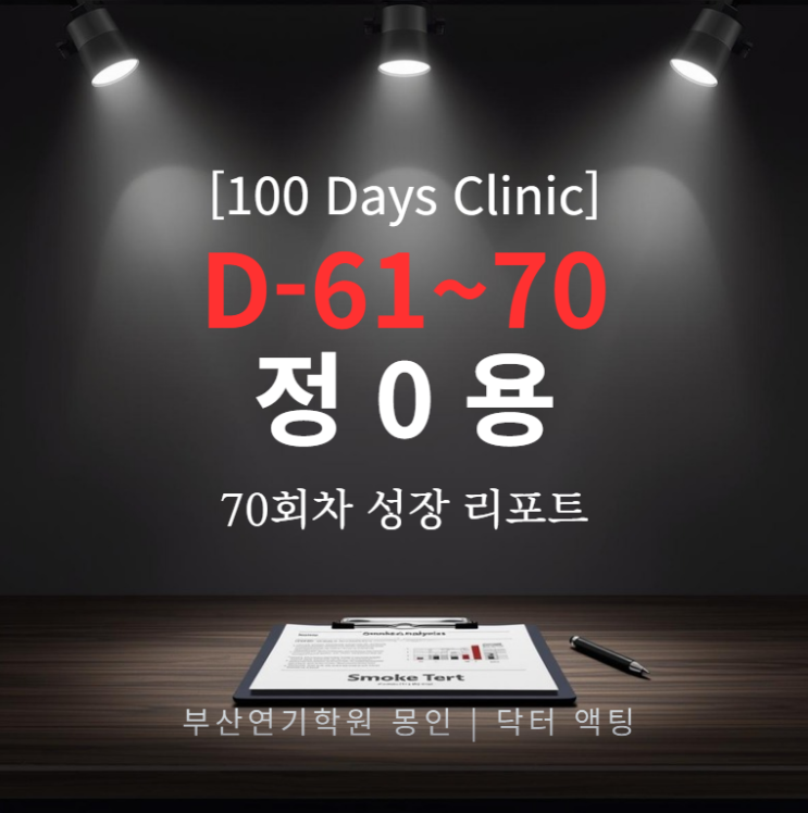 안녕하십니까, '닥터 액팅' 이민우 원장입니다. 입시라는 긴 터널의 중반을 넘어, 이제 70일차라는 고지에 도착했습니다. 이번 구간(D-61 ~ D-70)은 단순히 연기 실력을 쌓는 단계를 넘어, '나는 어떤 배우가 되고 싶은가'와 '어떤 환경에서 성장하고 싶은가'에 대한 정O용 학생의 주관이 뚜렷해지는 시기였습니다. 정O용 학생의 지난 10일간의 기록을 심층 분석하여 학부모님과 학생에게 공유합니다. 1. 총평: 흔들리지 않는 뿌리, '자기 객관화'의 시작 이번 10일간 정O용 학생에게서 가장 돋보였던 점은 '확신'입니다. 막연하게 "연극영화과에 가고 싶다"는 수준을 넘어, 본인이....... <img src="https://blogthumb.pstatic.net/MjAyNjA0MTRfMjY5/MDAxNzc2MTYyNjE0MTYz.CdtbXq3qCzcFx64cWLL_dvNXLQGfLwm-qte9tMQjxNMg.2NzkTloHR08ZisJGOCbqP-vwYTqAIoloU_fbWe_QxOUg.PNG/image.png?type=s3" />