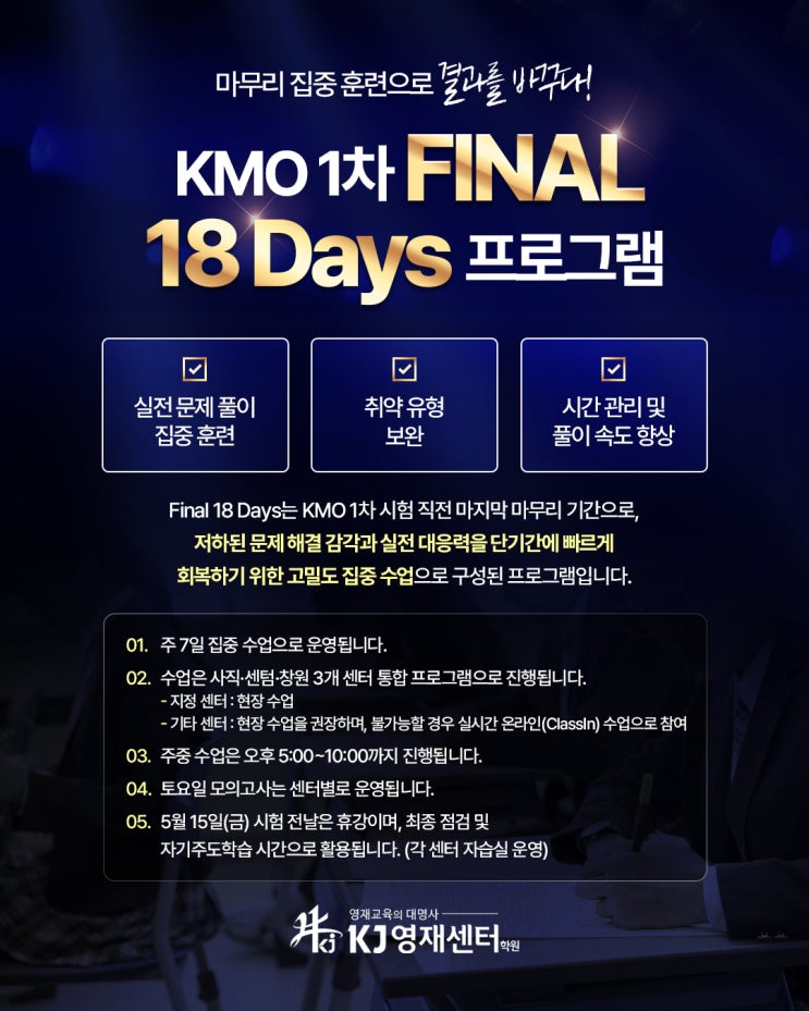 KMO 1차 시험 D-18, 지금이 마지막 기회입니다 | KJ영재센터 Final 18 Days 프로그램