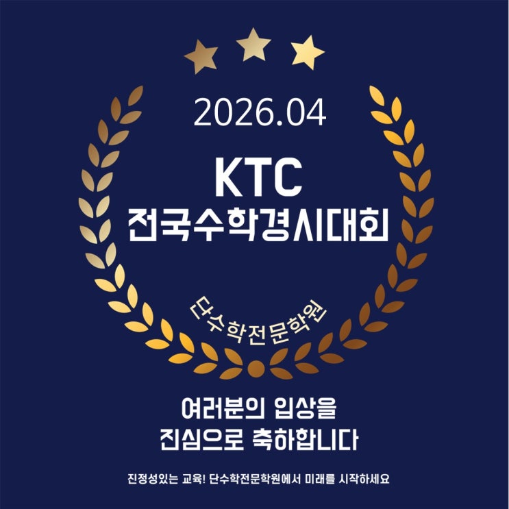 기초부터 심화까지 단단하게 단수학전문학원 입니다. 225회 KTC전국수학경시대회 입상을 축하합니다. 이번 경시대회는 상 받은 인원이 많네요~ 입상한 학생들 모두 축하합니다. ^^ 온천중 몇몇 학생들이 수학여행과 수련회 관계로 경시를 치르지 못해서 무척 아쉬워했는데 다음 달 경시 기대해 봅니다.^^ KTC전국수학경시대회는 수학영재발굴과 미래 인재양성, 수학문제 해결에 대한 도전과 수학 영재성 신장을 목적으로 합니다. 단수학전문학원의 '맞춤형학습시스템' 상담문의하시면 자세히 안내 도와드리겠습니다. 단수학전문학원 원장이야기 바로가기 ↓↓↓ 교육상담 tel:051-711-7099 네이버 톡톡상담 ↓↓↓ <img src="https://blogthumb.pstatic.net/MjAyNjA0MTZfMjgz/MDAxNzc2MzIyODU4MTQ5.9Aut9OzGvCzTiousmiWQkwJH2DwkAnHpPoKZEUfVdhog.eLuXRukKyoep8tdSo1PqDZMm7Zf0kFAej_M3DoFoqBsg.JPEG/%B0%E6%BD%C3.jpg?type=s3" />