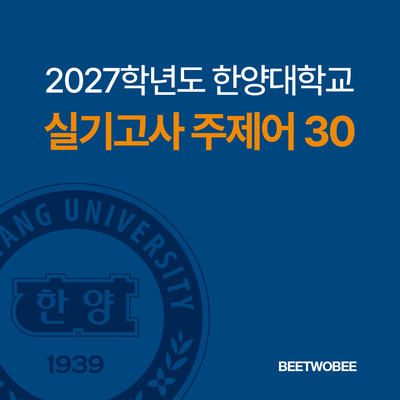 2027학년도 한양대학교 에리카 수시·정시 실기고사 주제 일부 변경 2027 한양대 실기대회 주제어 30 * : 새로 추가된 주제어 · 각 그룹별 10개씩의 주제어를 포함한 총 3개의 주제어 그룹으로 구성(30개 주제어) · A, B, C 3개 그룹 중 2개 그룹을 추첨한 후, 추첨된 2개 그룹에서 각 1개씩 총 2개의 주제어를 추첨하여 출제 주요대학 모집요강 자세히 살펴보기 ↘ #한양대실기대회 #한양대주제 #한양대문제은행 <img src="https://blogthumb.pstatic.net/MjAyNjA0MjJfNDUg/MDAxNzc2ODM1MzEwOTM0.rEPQIyIvdX_s4x5Z3xKYnryOKxLju4T5dmpT8B_oYPQg.V7KCN1zvqT-ak93XTuNSYkESl2GdL8OWE1ghCjnLdLMg.PNG/%C7%D1%BE%E7%B4%EB%BF%A1%B8%AE%C4%AB_%B9%AE%C1%A6%C0%BA%C7%E0%282%29.png?type=s3" />