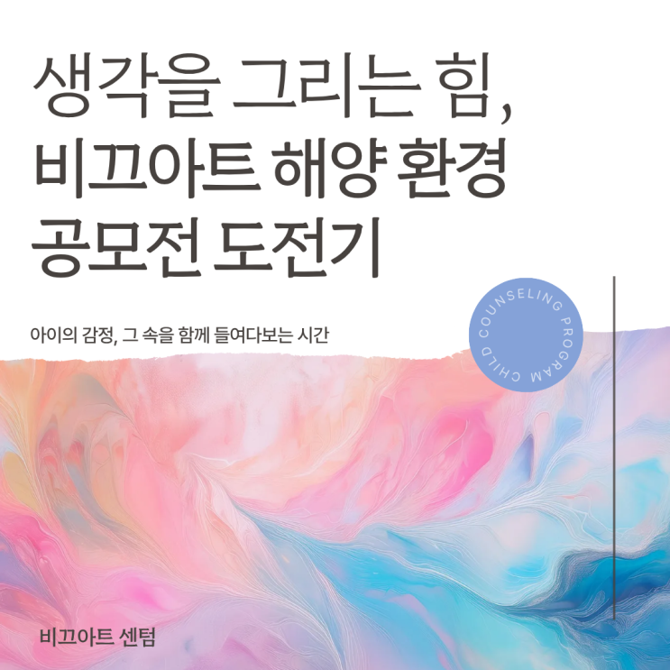 우리 아이가 스케치북 앞에서 머뭇거리는 모습을 보신 적 있으신가요? 캔버스를 채워나가는 것을 두려워하거나, 정해진 틀에 갇혀 창의적인 상상력을 온전히 펼치지 못할 때 학부모님들의 고민은 깊어집니다. 그림은 아이의 내면을 비추는 거울이자, 생각의 힘을 길러주는 훌륭한 도구입니다. 아이가 자유롭게 상상하고 자신감 있게 표현할 수 있으려면, 단순한 따라 그리기가 아닌 아이의 시선을 존중하는 '생각을 그리는' 과정 중심의 교육이 필요합니다. 생각을 그리는 시간, 비끄아트 프리미엄 공모전 클래스 이번 비끄아트 센텀점에서는 '어린이 해양 환경 미술 공모전'을 맞이하여 아이들과 아주 특별한 프로젝트....... <img src="https://blogthumb.pstatic.net/MjAyNjA0MjBfODMg/MDAxNzc2NjczODk2MTM5.sJ1BIxbQilMdl1bz1sh4tPvGHpJ2nxDZvUgw6M6pcOIg.wFbN6oGWDFQGCWbM70eNQXUxYE6P6Wy8C1KyW02zq-cg.PNG/%C1%A6%B8%F1%C0%BB_%C0%D4%B7%C2%C7%D8%C1%D6%BC%BC%BF%E4._%285%29.png?type=s3" />