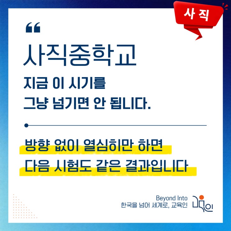 사직중학교 부산, 지금 이 시기를 그냥 넘기면 안 됩니다