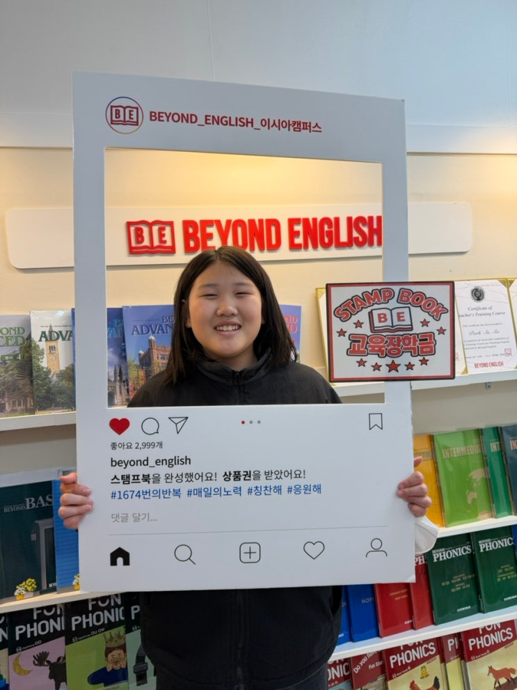 비욘드 친구들, 정말 반가운 소식을 전해드려요 우리 비욘드 친구들이 그동안 꾸준히 노력해서 스탬프북을 열심히 채우고, 드디어 상까지 받게 되었답니다! 매일 빠지지 않고 성실하게 참여하며 작은 목표 하나하나를 차근차근 이뤄온 결과라서 이번 수상이 더욱 의미 있고 값지게 느껴집니다✨ 수업 시간마다 집중해서 참여하고, 포기하지 않고 끝까지 해내려는 모습이 선생님들에게도 큰 감동을 주었어요 이렇게 좋은 결과로 이어진 건 우리 친구들의 노력은 물론, 항상 응원해주시고 함께해주신 학부모님들 덕분이기도 합니다 앞으로도 비욘드 친구들이 즐겁게 배우면서 자연스럽게 성장할 수 있도록 더 좋은 수업과 환....... <img src="https://blogthumb.pstatic.net/MjAyNjA0MjJfMjQ2/MDAxNzc2ODUxMTc3NzM3.hdKec-tRBBJAIKu7-szwAEH6v6UQc73s4jgp6uQp4LUg.RWruzVoduXHdOnExLiuWpwU7iXKKe8LiH4WQxy3GDisg.JPEG/IMG%A3%DF6523.jpg?type=s3" />