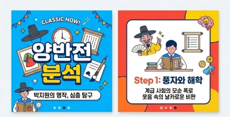 Q1. 양반이 자신의 신분을 마을 부자에게 팔게 된 결정적인 이유는 무엇일까요? 정답: 관아에서 빌린 곡식인 '환자(환곡)' 천 섬을 갚지 못해 옥에 가둘 위기에 처했기 때문입니다. 해설: 당시 양반들의 경제적 무능력과 조선 후기에 돈으로 신분을 사고팔 수 있었던 신분제의 동요를 보여주는 핵심 사건입니다. Q2. 이 소설의 핵심 표현 방법인 '풍자(諷刺)'에 대한 설명으로 옳은 것은 무엇일까요? 정답: 대상의 부정적인 면이나 부조리를 웃음을 유발하며 간접적으로 비판하는 표현 방법입니다. 해설: 풍자는 직접 말하기 어려운 사회의 불합리를 에둘러 비판하여 독자에게 읽는 재미와 비판적 시각을 동시에 제공합니다....... <img src="https://blogthumb.pstatic.net/MjAyNjA0MThfMTk4/MDAxNzc2NDQwOTA0OTc5.DAUqiOXss6abvK5ipMrOJuLH8FJ_-Wqr1fDmRJyVaCgg._FYQt4HauAH5Zlvpc7ARsZJIo1r-sp5V0D0XI5EZKAsg.JPEG/900_1776440790310.jpg?type=s3" />