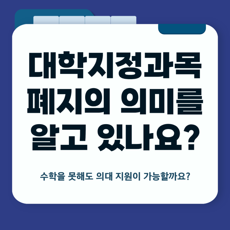 안녕하세요, 훈셈수학학원입니다! 어느덧 완연한 봄기운이 느껴지는 4월 중순입니다. 저희 훈셈수학학원은 중간고사 대비를 위한 준비로 바쁜 일상을 보내고 있습니다! 학부모님들께서 가장 민감하게 반응하시는 대학 입시 분야에 정말 중요한 변화의 바람이 불고 있는데요. 바로 상위권 대학들의 '수능 지정 과목 폐지' 이슈입니다. 쉽게 설명하면 그동안 수학을 어려워하던 학생들이 가장 부담스러웠던 수학 심화 과목들에 대한 입시 부담이 줄어들었다고 보면 됩니다! 그동안 이과 계열 학과에 지원하려면 수학에서는 미적분이나 기하를, 탐구에서는 과학을 반드시 선택해야 했습니다. 하지만 최근 연세대, 성균관대 등 주요 대학들....... <img src="https://blogthumb.pstatic.net/MjAyNjA0MjBfNzMg/MDAxNzc2NjQ2ODU4MDQ0.mGMuTAKj9gKdqlBm_xvcE33btIIFUbqkWFlgRmfrVAEg.8OtETIdjk7z3iQvmboYFfSJxM5v3yyUnmnLhmCRSHl0g.PNG/%B4%EB%C7%D0%C1%F6%C1%A4%B0%FA%B8%F1%C6%F3%C1%F6_%285%29.png?type=s3" />