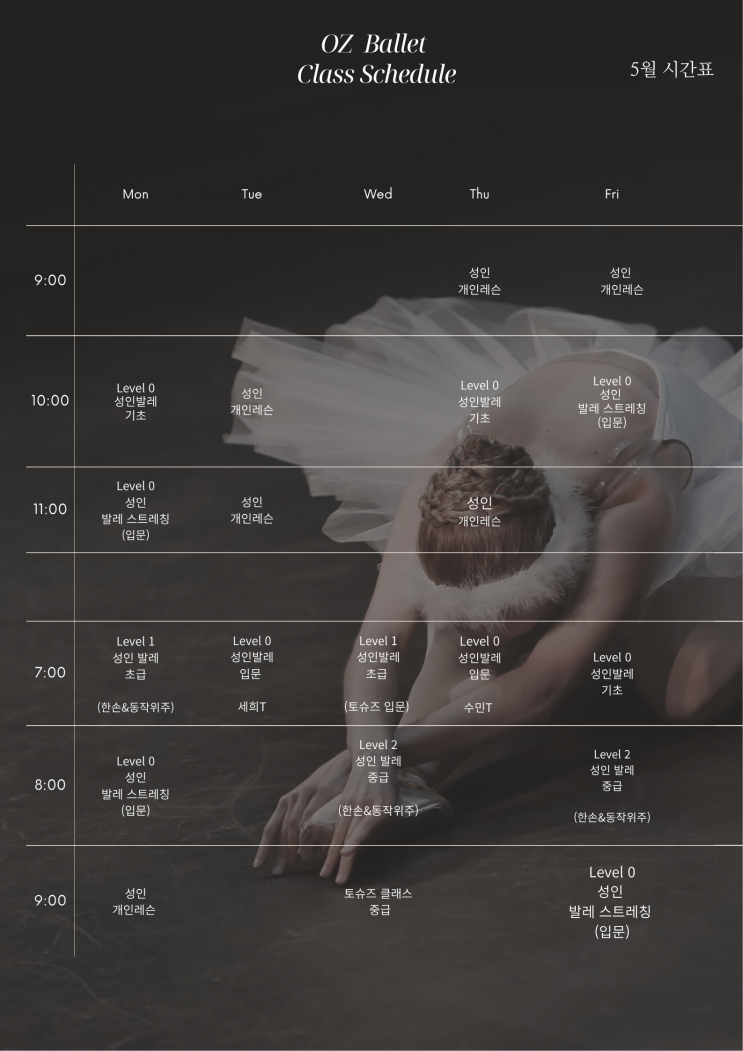 2026년 5월 오즈발레학원 성인반 시간표♡