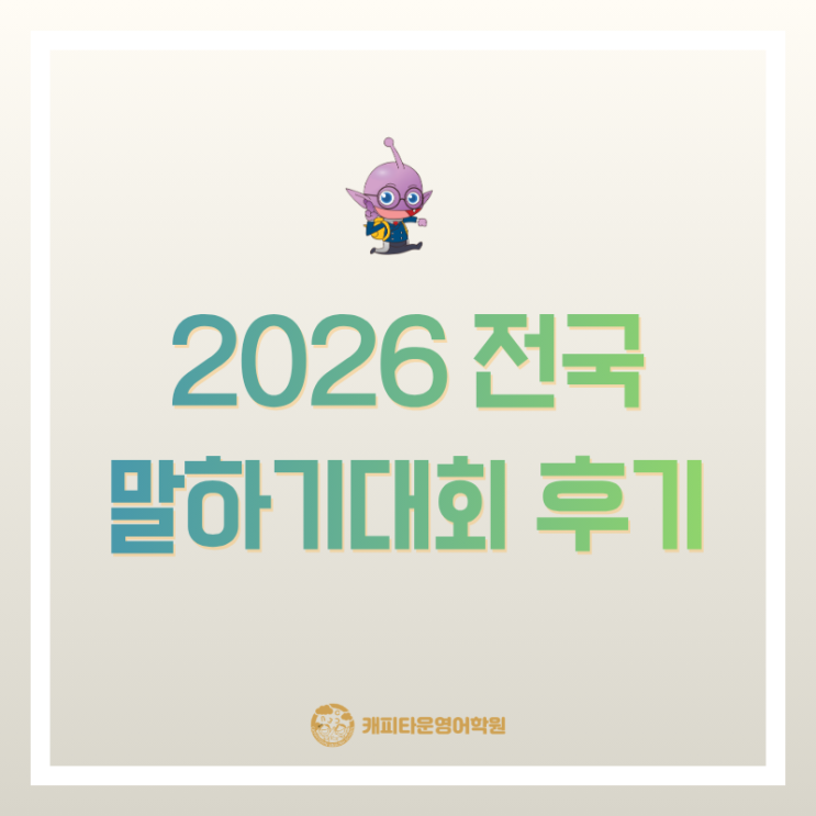 여기 누가 시켜서가 아닌, 스스로 선택해서 전국 영어 말하기 대회에 출전한 다섯 용사가 있습니다! 전국 영어 말하기대회 소감문으로 보는 아이들의 속마음 최근 캐피키즈는 전국 말하기 대회를 준비하며 뜨거운 열정의 시간을 보냈습니다. 제가 요즘 아이들의 마음을 들어보는 즐거움에 빠져있어요 ㅎ 오늘은 아이들의 '마음'이 담긴 소감문을 공유 드려 봅니다. 카메라 속의 나, 객관적으로 나를 바라보기 아이들이 대회를 준비하며 가장 놀랐던 순간은 '영어로 말하는 내 모습을 영상으로 처음 봤을 때' 였다고 해요. 리허설 영상을 촬영해, 직접 원서의 원어민 소리와 비교하며 속도와 리듬이 얼마나 원어민과 똑같....... <img src="https://blogthumb.pstatic.net/MjAyNjA0MTZfMTAg/MDAxNzc2MzQ0MjEwNDc0.VR1rV6l7BBH0K-WK1sRkxBlXrv_mkyYX_lkNJfEp3pwg.tWVrCSyDfv9-bO0voGCbMBMyWwxJm5O1LmkNkYvCAvYg.PNG/%BF%D6_%BF%B5%BE%EE_%B8%BB%C7%CF%B1%E2_%BF%AC%BD%C0%C0%BA_%BB%FD%B0%A2%BA%B8%B4%D9_%BE%EE%B7%C1%BF%EF%B1%EE%BF%E4_%2817%29.png?type=s3" />