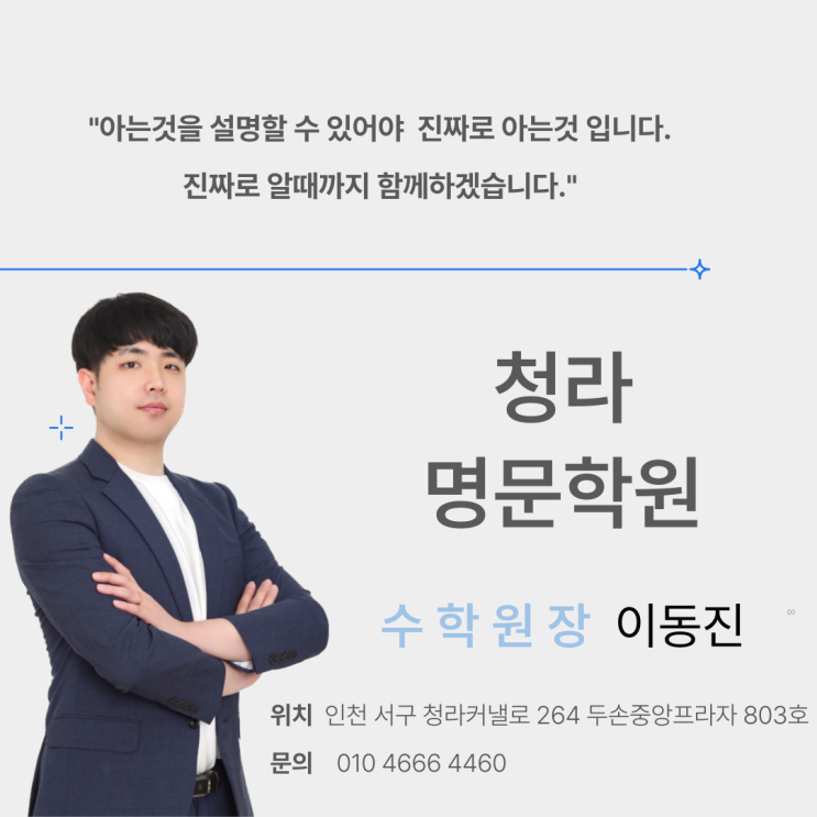 안녕하세요 :) 청라 명문학원 수학원장 이동진입니다. 수학을 잘하는 학생들을 보면 단순히 문제를 많이 푼 학생이 아니라 문제를 끝까지 생각할 수 있는 힘이 있는 학생입니다. 그래서 많은 학부모님들께서 이런것들을 고민하십니다. "우리 아이는 왜 생각을 못할까요?" "사고력을 키우려면 어떻게 해야 하나요?" 먼저 말씀드리고 싶은건 생각하는 힘은 타고나는 것이 아니라 만들어지는 능력이라는 점입니다. 생각하는 힘이 부족한 이유 많은 학생들이 문제를 보자마자 답을 찾으려고 하거나 막히는 순간 바로 포기하거나 풀이를 외워서 적용하려고 합니다. 이렇게 되면 생각하는 과정 자체가 생략됩니다. 그래서 조금만 낯....... <img src="https://blogthumb.pstatic.net/MjAyNjA0MjNfMTU1/MDAxNzc2OTI5NTU5OTcw.9Pv5ErEmBp-fShYaYkjPP5M2Ubu8fE6mXjEeQXccMEwg.nBmDA65mfXtzjosjPtVozO-9TLexvo1H9Tw63fnpvDsg.PNG/%B4%EB%B9%AE.png?type=s3" />