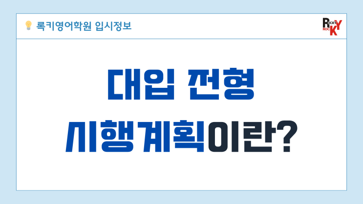 안녕하세요. 록키영어학원입니다. 여러분은 "대학 입학전형 시행계획"이라는 것을 들어보셨나요? 아마 많은 분들이 잘 모르시는 용어이실 것 같습니다. 그러면 대학 수시 혹은 정시 모집요강이라는 단어는 들어보셨나요? 아마 이 단어는 많이 접해보셨을 것이고, 이미 자녀분을 대학에 보내본 경험이 있으신 분들이라면 원서 접수 등을 할 때 각 대학의 입학처 홈페이지에 들어가서 모집요강을 유심히 살펴보신 경험이 있을 것입니다. 앞서 언급드린 "대입전형 시행계획" 또한 여러분들이 흔히 잘 알고 계시는 "입시모집요강"과 같은 맥락에서 발표되는 입시 자료입니다. “대학 입학 전형 시행계획”은? "고....... <img src="https://blogthumb.pstatic.net/MjAyNjA0MjNfMTE1/MDAxNzc2OTQwODA2NzQ4.53kZl4oMp3WSt1hlLWIwipjz_3kOt1G1oQ7uWke28QIg.Ww4JGQ0440Gs5J6RjhlBXpKKMsKuA7fQi1PuW81a2lUg.PNG/1.png?type=s3" />
