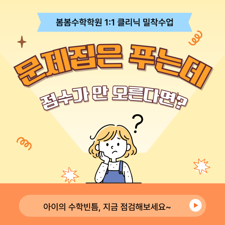 문제집은 푸는데 점수가 안 오른다면? 성복동 봄봄수학학원 1:1클리닉 밀착수업