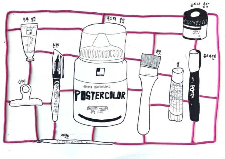 오늘은 아이들이 좋아했던 수업을 소개드립니다. ‘내가 사용하는 미술 재료’를 직접 그려보는 시간.. 많은 재료 중 각자 원하는 연필, 붓, 물감, 포스카펜 등 익숙한 재료들을 하나씩 관찰하며 드로잉을 진행했어요 ✏ 헷갈리는 용어를 바로잡고, 재료에 대해 자세히 관찰하며 표현하는 수업을 진행했습니다. 단순히 모양만 따라 그리는 것이 아니라 각 재료의 길이, 비율, 형태를 비교하며 관찰하는 힘을 기르는 데 집중했습니다. 집중하는 귀여운 입들... 특히 이번 수업의 포인트는 ‘구성’과 ‘연결’입니다. 아이들은 화면 안에 재료들을 배치하고, 라인을 이용해 서로 연결하며 하나의 작품으로 완성해 나갔어요. 이 과정....... <img src="https://blogthumb.pstatic.net/MjAyNjA0MjRfMzQg/MDAxNzc3MDIyNDM4NDg0.jkRPCHLTe02B3a6CuqQ0hkFYTaLl0Tg0Cu13Ejt2C9cg.9b9UVd4_fV5CQalbZHlGGPRGr-3VZ2U2Hh4Z1suab6Mg.JPEG/IMG%A3%DF9469.jpg?type=s3" />