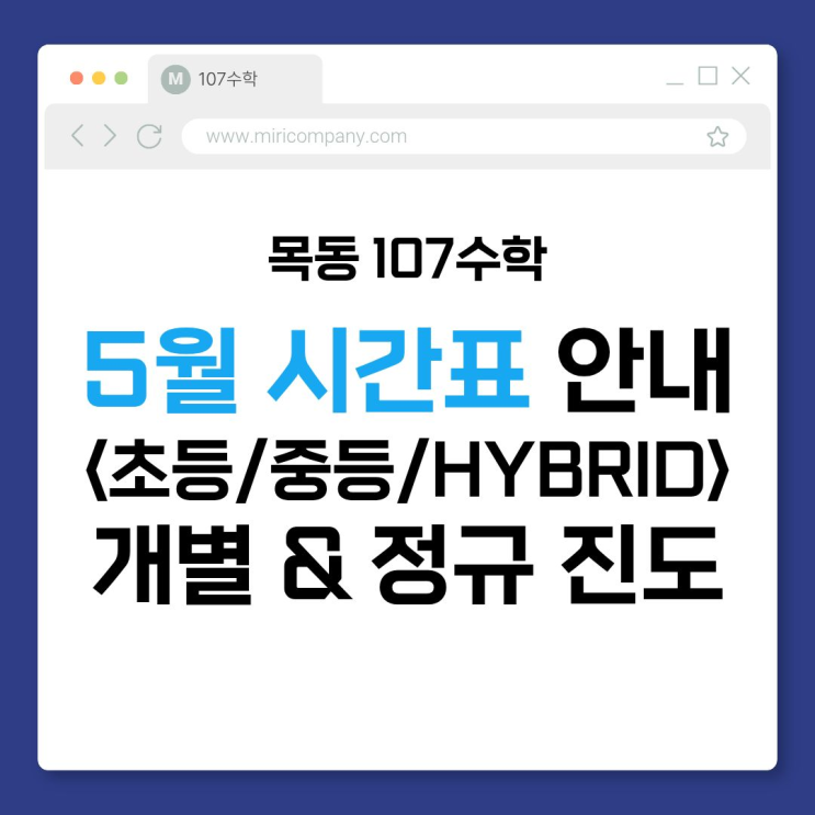 [목동 중등수학] 107수학, 초등/중등/HYBRID 개별 & 정규 진도 5월 시간표 안내