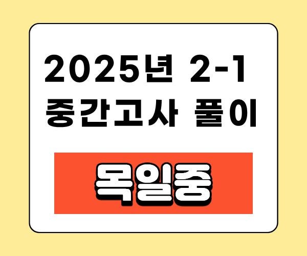 2025년 2학년 1학기 목일중 중간고사 주요문제 기출해설 입니다. 이번 중간고사 시험범위는 특히나 정확한 식을 세우면서 푸는 것이 가장 중요합니다. 맞은 문제라고 하더라도 선생님들이나 해설지의 풀이와 다른 부분이 없는지 꼼꼼하게 체크한다면 충분히 좋은 성적을 받을 수 있을 것 입니다! <img src="https://blogthumb.pstatic.net/MjAyNjA0MjRfMjg0/MDAxNzc3MDE2MjAwMDgw.RoRwZB6Wlda2mEaocAh3pgtsUxP57Qv_HgyEw7_0c5gg.oCREXgBaV5cLmHud0rLp8paxZlN21KRX4gCSJ_KamNsg.JPEG/%BA%ED%B7%CE%B1%D7_%B1%E2%C3%E2%B8%AE%BA%E4_%285%29.jpg?type=s3" />