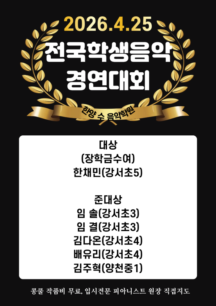 2026상반기콩쿨 (3,4월)한양수 대상,준대상 모두 입상⭐️