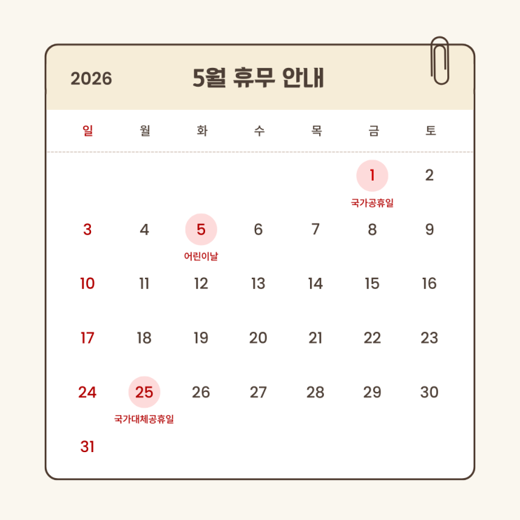 2026년 5월 휴무일 및 HEI English 수업 안내