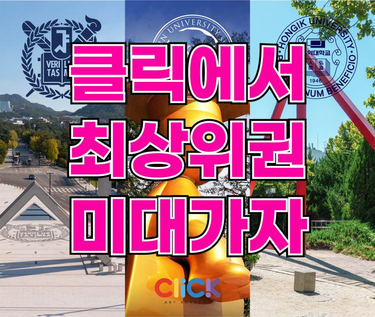 안녕하세요, 위례미술학원 클릭입니다. 오늘은 미술대학 중 최상위권 학교들에 대해 알아보고, 최상위권 미술대학에 합격한 합격생들의 인터뷰와 재현작을 통해 최상위권 미술대학 합격 비결에 대해 알아보려고 합니다. 최상위권 미술대학을 목표로 미대입시를 준비하고 있는 학생들에게 도움이 되길 바라면서 위례미술학원 클릭과 함께 시작해 볼까요? 일반적으로 최상위권 대학 TOP3는 'SKY', 즉 서울대, 연세대, 고려대로 알고 계실 텐데요, 미대에서는 최상위권 대학 TOP3가 조금 다릅니다. 전공자가 아니더라도 요즘은 많이 알고 계시는 미대 TOP3는 바로 서울대, 홍익대, 국민대입니다. 미대에서는 워낙에 역사와 전통이 있는 학....... <img src="https://blogthumb.pstatic.net/MjAyNjA0MjNfMjI5/MDAxNzc2OTI3MDA0MzA4.WLGRjafepLQgN2F4-mJclPK1dncnTmoY9HtZOyMHi-Ug.3Y3uBVQnXFpIj5DknUWw5VcveLPpU2oIXn007SiteWsg.JPEG/%C3%D6%BB%F3%C0%A7%B1%C7_%B9%CC%BC%FA%B4%EB%C7%D0_%B4%EB%C7%A5.jpg?type=s3" />