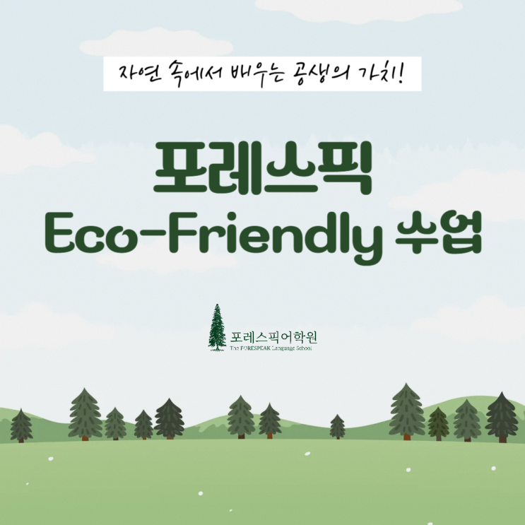 안녕하세요. 강서구 마곡동에 위치한 자연스럽게 스며드는 영어의 숲속! 초등·중등 영어 전문학원 포레스픽 영어학원입니다. 오늘은 우리 아이들이 자연과 호흡하며 환경의 소중함을 배워보는 포레스픽 친환경 수업 소식 전해드리려고 합니다. 매해 1년에 한 번 포레스픽은 원어민 선생님 수업 내에서 지구와 공생하는 방법을 고민하고 멋진 세계 시민으로 성장하는 친환경 수업을 진행합니다. 1. 세상을 바꾸는 작은 행동 (Small action, Big impact) 포레스픽 아이들은 매년 환경에 대해 고민하고 자연에 대해 학습해보는 특별한 시간을 가집니다. 원어민 선생님과 함께 환경 학습을 하고 관련 활동들을 영어로 진행합니다. 숲체험 수....... <img src="https://blogthumb.pstatic.net/MjAyNjA0MTZfNTcg/MDAxNzc2MzIzMTY1MTI2.DFYkg_hUDUgoEw0nZLMs9e0s0IYCCMK_MIAwcvVuWxcg.w9r9HpGPuZ6gXCG2CPx6PdrFbNN3V8yEw92fA-vW0Ksg.PNG/%B8%B6%B0%EE%B5%BF_%BF%B5%BE%EE%C7%D0%BF%F8-001_%284%29.png?type=s3" />