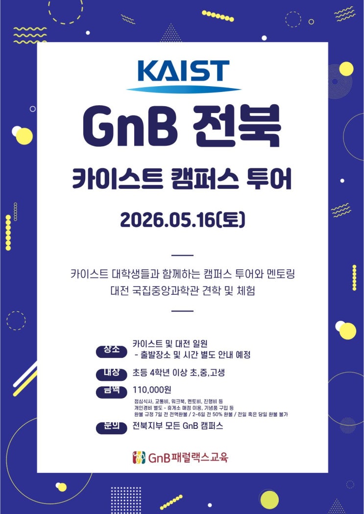 매년 효천지앤비어학원 아이들은 전국의 명문대를 탐방합니다. 2026년 투어일정은 KAIST! 우리 아이의 푸른 꿈을 향해 떠나는 여행! 문의 및 신청은 학원으로 부탁드립니다~^^ <img src="https://blogthumb.pstatic.net/MjAyNjA0MjBfMjM1/MDAxNzc2Njg4NDE1MDc4.CimEv50yvnZ46zDq3vhrMWXkjZQQRNfVhAvvZVpX-HIg.RjYs1UK5tHQwwrDhsxOO-1ksx38YWxWDisx_SCrLIGcg.JPEG/KakaoTalk_20260413_201513216.jpg?type=s3" />