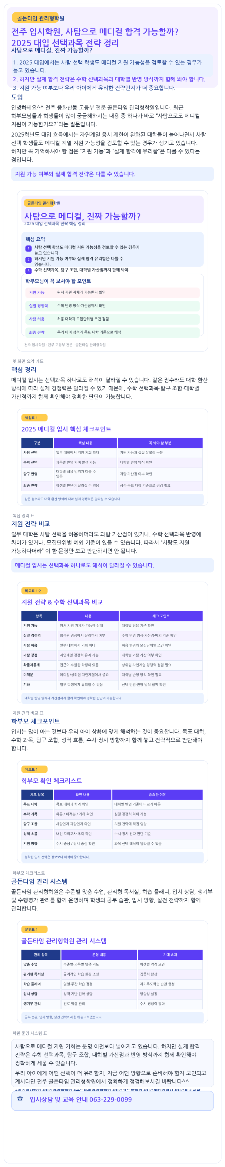 전주 입시학원, 사탐으로 메디컬 합격 가능할까? 2025 대입 선택과목 전략 정리 | 골든타임 관리형학원/관리형 독서실