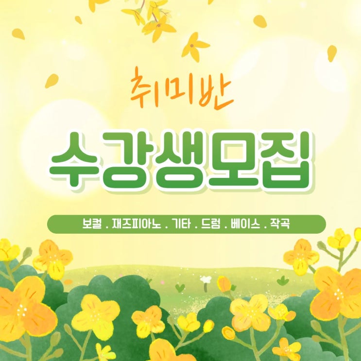 안녕하세요. 라라실용음악학원입니다~! 올 해는 유독 벚꽃이 빨리 진 느낌이라 아쉬운데요ㅠㅠ 모두 벚꽃보셨나요? 따뜻한 봄을 맞이해서 라라실용음악학원에도 새로운 수강생을 모집하게 되었습니다~~ 악기나 보컬수업에 관심있었는데 추운 날씨에 망설이고 계셨던 분들은 도전해보시기를 바랍니다! 취미반 수업은 수강생의 스타일에 따라 한 곡을 완성하시는 분, 기초부터 차근차근 배워나가시는 분 교회반주, 밴드연습 등 다양한 방향으로 이루어지고있는데요~! 악기를 처음배우시거나 악보를 못보셔도 수강이 가능합니다^^ 음악을 배우며 지구력을 기르고 꾸준한 연습을 통해 실력이 향상되는것을 보며 자존감까지 끌어올릴 수 있습니다~! 초....... <img src="https://blogthumb.pstatic.net/MjAyNjA0MTFfMjU5/MDAxNzc1ODc5NDUzMDQ2.wIry94Y8BarUXiy3nXlOHN5fiYf-20Smr7WFbpHfZvAg.W5XJEHBWlB1R3YavPul4swUZkYDHw7ivYGGnbhBIlQAg.JPEG/%C7%D0%BF%F8%BA%ED%B7%CE%B1%D7.jpg?type=s3" />