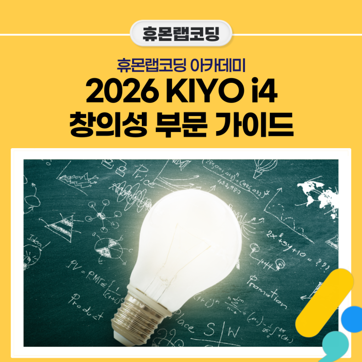 안녕하세요! 스스로 생각하는 힘을 키우는 휴몬랩코딩 아카데미 입니다. 곧 진행 예정인 키요대회(KIYO 4i)에 대한 가이드를 전달해드릴 예정입니다. 그 중에서도 가장 많이 참가하는 부문인 '창의성' 부문에 대해 설명드리겠습니다. KIYO 4i 대회 설명 KIYO대회는 세계청소년올림피아드(Korea International Youth Olympiad)4i를 의미하며, 전 세계 청소년들이 창의력, 발명, 과학 기술 분야 역량을 육성하는 국제대회입니다. 창의성, The BBl, 어린이 그림, 토론 총 4개의 부문으로 나눠져 있습니다. KIYO 4i 창의력 부문 설명 대회 주제 이번 제11회 KIYO 창의력 대회의 핵심 주제는 "버려지는 폐기물에서 가치를 찾는 순환경....... <img src="https://blogthumb.pstatic.net/MjAyNjA0MjNfMTI0/MDAxNzc2OTExMzI4NzA4.uvIs9wV15ibvz-v8vqN4DL0OcW_0Vw5n7jMDFaLImzMg.DpXl3vJkl2WYaDQsNGVnxpkaviOuWjM-zwSau45qzAUg.PNG/%BA%ED%B7%CE%B1%D7-2-007.png?type=s3" />