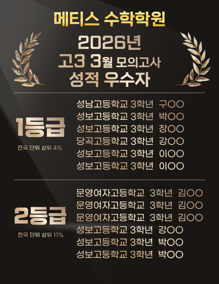 관악구 수학 메티스수학 2026년 고3 3월 모의고사 성적 우수자