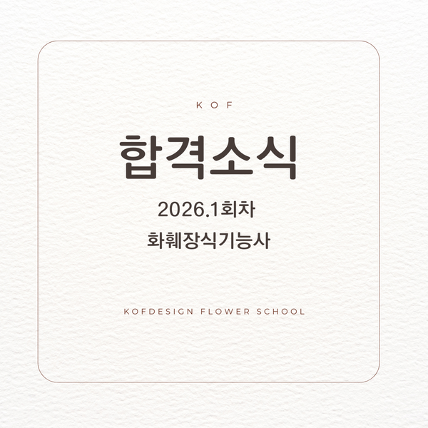 2026년 화훼장식기능사 1회차 합격을 진심으로 축하드립니다! ! #화훼장식기능사 #화훼장식기능사실기 #화훼장식기능사합격후기 #플로리스트학원 #화훼장식기능사2026 안녕하세요, 코프디자인 플라워스쿨입니다. 2026년 화훼장식기능사 1회차 시험 결과가 발표되었죠 우리 학생분들 떠올리며 합격소식을 등록합니다. 이번에도 코프디자인과 함께 준비하신 수강생분들의 기쁜 합격소식을 전할 수 있어서 기뻐요 처음 학원 문을 두드렸던 순간부터, 반복 연습으로 실력을 쌓아온 모든 순간들이 수강생들의 합격 소식으로 이어졌습니다. 대부분의 수강생분들이 합격소식을 전해주셨고 물론 늘 그렇듯 아쉽게 떨어진 수강생분들도 계시지만 시험준비....... <img src="https://blogthumb.pstatic.net/MjAyNjA0MjZfMjM1/MDAxNzc3MTk1OTczOTgy.KioGgxgoLKkRFP9EYfgRFGpKIlXlccMs7YX4WQGamv4g.xR15-5rubz4FdRGISYfjHDbRu235Yzd_CFDJytWJqxwg.PNG/%BC%F6_%B0%AD_%C8%C4_%B1%E2.png?type=s3" />