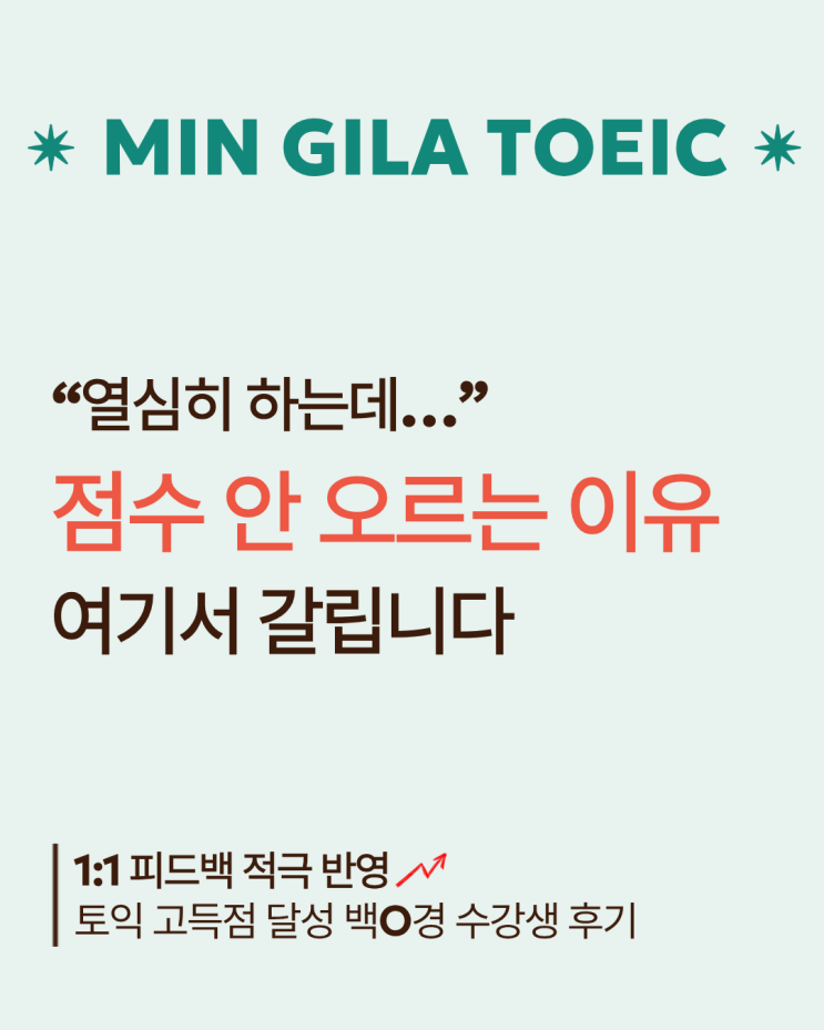 토익 성적 안 오르는 이유? 1:1 피드백으로 825점 달성! 창원토익성적 ㅣ 민길아토익학원