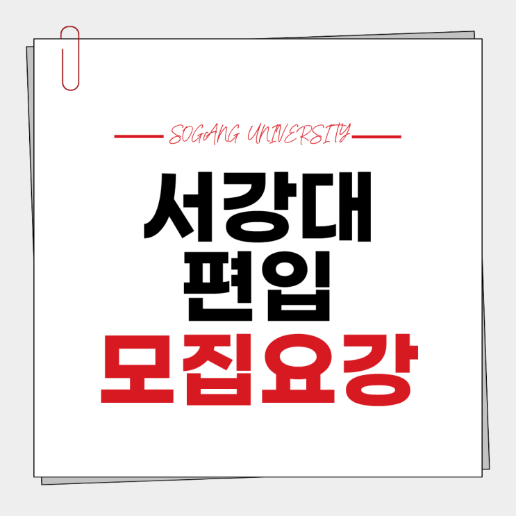 안녕하세요 노량진 편입학원 이찬이 편입 입니다 2026년 서강대학교 편입 모집요강, 편입시험 날짜, 모집인원, 경쟁률 등을 알아보도록 하겠습니다 성균관대와 더불어 편입시험에서 학생들이 가장 원하는 학교 중 한곳인 서강대학교 모집요강을 살펴보도록 할게요 서강대학교는 어떤 조건과 기준을 가지고 있는지 알고 있다면 2027년 서강대학교 편입시험 대비를 하는데 조금 더 수월하지 않을까요? 2026년 서강대학교 편입시험 전형일정 매년 연말이 다가올수록 편입을 준비하는 학생들이 궁금해 하는 것 중 하나는 서강대학교 편입시험을 언제 보느냐 일 것입니다. 2026년 서강대학교 편입시험 전형일정을 살펴보도록 하겠습니다 서강대학교 편....... <img src="https://blogthumb.pstatic.net/MjAyNjA0MTRfMTkz/MDAxNzc2MTM1OTY0MTE0.JCufFXO_bIs9864Otxojx2bt67gkQ27yIDvRCtfBPZYg.HlnrZsfX3rqS-Ea48hTclvq7myuSvcklN3byI7hlvpkg.PNG/%BC%AD%B0%AD%B4%EB_%C6%ED%C0%D4_%B8%F0%C1%FD%BF%E4%B0%AD_%281%29.png?type=s3" />