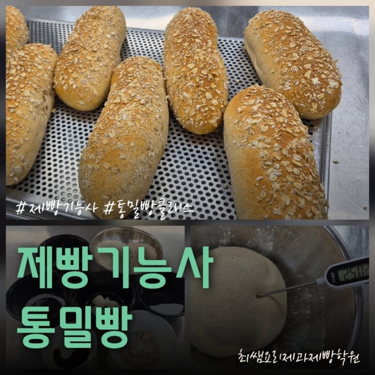 안녕하세요. 최쌤입니다. 이번 제빵기능사 실기 과정에서는 통밀빵 품목 수업을 진행했어요. 통밀빵은 기본 공정이 단순해 보이지만 각 단계마다 정확한 작업이 이루어지지 않으면 결과가 바로 달라지는 품목이라 시험 준비 과정에서 반드시 반복 연습이 필요한 메뉴예요. 그래서 이번 수업에서는 공정 하나하나의 의미를 이해하고, 실전 시험 기준에 맞춰 정확하게 작업하는 데 중점을 두고 진행했어요. 먼저 계량 단계부터 꼼꼼하게 시작했어요. 제빵기능사 시험에서는 정확한 계량이 가장 기본이기 때문에 저울 사용법과 재료 계량 순서를 다시 한번 강조했어요. 특히 통밀가루는 수분 흡수력이 높아 계량이 조금만 달라도 반죽 상태가 달라질....... <img src="https://blogthumb.pstatic.net/MjAyNjA0MjFfMTcg/MDAxNzc2Njk3MzczOTYy.GIKm1sLRIb-try2XnMicnyplNZhAPQHmp2Q6wX_KtSgg.Dz6eqrX9vjdVXTOQDRQ7peBNQnZHHhtxDx_tcwQIV1Ug.JPEG/900_20260421000246.jpg?type=s3" />