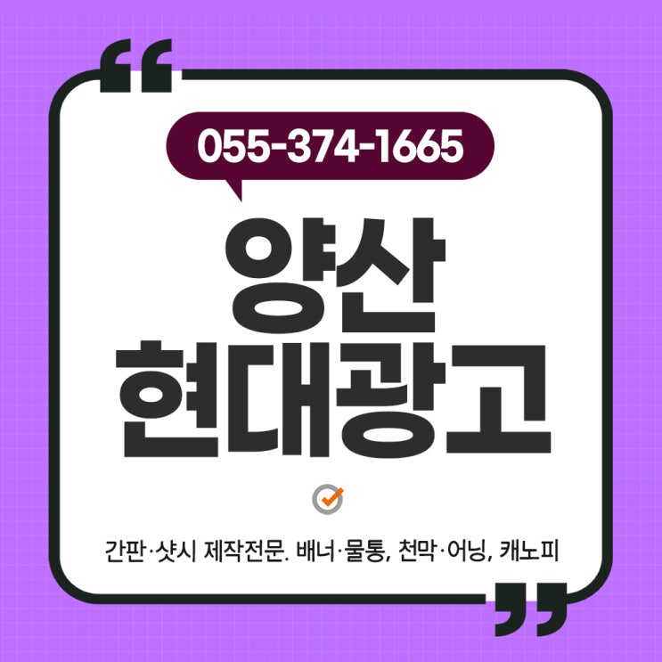 양산 현대광고 ★ 문의 : 055-374-1665 ★ 주소 : 경남 양산시 상북면 상북중앙로 437 ★ 특징 : 간판·샷시 제작전문. 배너·물통, 천막·어닝, 캐노피, L E D, 전광판, 현수막, 게시판, 실사출력, 사인물제작. 병원 식당 관공서 다양한업종 시공사례, 오랜신뢰와 노하우, 고객에 맞는 제작부터 시공 마무리까지 믿고 맡길수 있는 광고기휙 전문업체 가게를 처음 열기로 결심했을 때나 오래 운영하던 공간에 변화를 주고 싶을 때 가장 고민되는 부분이 무엇인가요. 아마도 지나가는 사람들의 시선을 사로잡으면서도 우리 가게만의 분위기를 어떻게 잘 전달할 수 있을까 하는 부분일 것입니다. 간판은 단순한 표지판이 아니라 손님과 나누는 첫 번째....... <img src="https://blogthumb.pstatic.net/MjAyNjA0MThfMjk3/MDAxNzc2NDY5MjMzNjAw.-QGLivvv_loLrPvU4qF77socPQtta_PCdBMVRWGx4JIg.ym4vmRjufdXa5Ga733TjkPBtfFcLYlvmWGfmBug4PUIg.JPEG/%BE%F7%B7%CE%B5%E5_%287%29_copy.JPG?type=s3" />