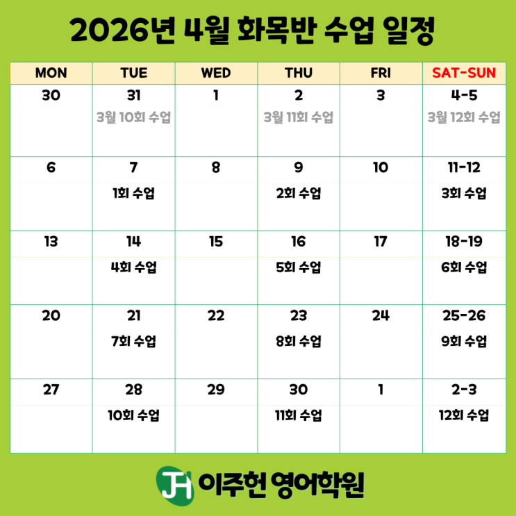 이주헌 중등부 영어학원은 이주미이주헌영어학원의 중등부로서 현행 입시 제도에 최적화된 영어 커리큘럼을 바탕으로 수준 높은 교육을 제공하고 있습니다. 대신중, 인왕중, 배화여중, 동명여중, 중앙중, 창덕여중, 덕성여중, 인창중, 홍은중, 청운중 학생들을 대상으로 진심을 다해 진짜 영어를 가르치고 있습니다! #영어성적향상 #중등영어전문 #이주헌영어 #이주미영어학원 #서대문영어학원 #중등부영어학원 #중학교영어학원 #학습관리잘하는학원 #입체학습영어 #독립문근처영어학원 <img src="https://blogthumb.pstatic.net/MjAyNjA0MTlfMiAg/MDAxNzc2NTc4MTA0NTYz.O2EgoWWP5S7ZEE6L8buRn7D4U86M06MommGcQGKe8Cog.SklVhE0SbvodS0NfEnPHzrwb4AyVH6RPsjXMw-b83r8g.PNG/2026%B3%E2_4%BF%F9_%C8%AD%B8%F1%B9%DD_%BC%F6%BE%F7_%C0%CF%C1%A4.png?type=s3" />