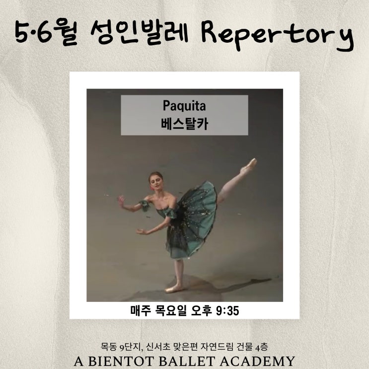 [목동발레학원]아비앙또발레학원 성인발레 5월-6월 작품반 안내 | 파키타 베스탈카