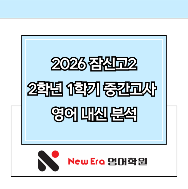 우리 2학년 친구들 안녕하세요~ 2학년 된 후 중간고사 첫 시험 영어 보느라 정말 고생 많았습니다!! 1컷이 4%였던 작년까지는 영어 내신 평균이 30점일 정도로 매우 어렵게 시험이 출제되었는데, 올해는 선생님 구성도 바뀌고, 시험이 훨씬 쉽게 출제되어 평균과 등급 컷이 상승할 것 같습니다. 아래 총평과 분석을 살펴봅시다! ○●○●○ ●총평● 시험이 쉬웠다! ●시험 분석● 교과서 프린트에 문법 사항이 중요한 게 많았는데, 1과 당위성의 should, 재귀대명사 강조 용법 2과 원급 비교, 강조 구문 출제되지 않았습니다. 1등급을 받기 위해서는 아이들이 소홀히 하기 쉬운 영역이었던, 고난도 단어 100개 리스트 암기와 듣기 스크립트 꼼꼼....... <img src="https://blogthumb.pstatic.net/MjAyNjA0MjhfMTQx/MDAxNzc3MzY0NzkyNzk4.t0Pu6TDIgAvZZAwrCtQMmfgFPOwcWNj9l7iZR2KNT_Yg.CGrTI2pX-teoIqr0yZ49TAzgNG_stcapmta1JQwiu9sg.PNG/image.png?type=s3" />