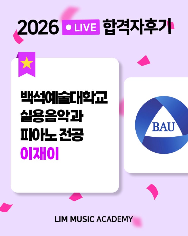 천호 미사실용음악학원 2026학년도 백석예술대학교/서울예술대학교 1차/홍익대학교 1차 실용음악과 피아노 전공 "이재이 학생" 합격후기 인터뷰입니다 실용음악과 피아노 전공 입시를 준비하는 친구들에게 많은 도움이 되길 바라요~! 1. 림실용음악학원에 오게 된 이유 피아노에 관심이 생겨 학원을 찾다가, 평소 알고 지내던 기타 전공 형이 림실용음악학원을 추천하여 방문하게 되었습니다. 홈페이지도 보고 방문해보니 시설이 좋아서 림실용음악학원에서 입시를 준비하게 되었습니다. 2. 선생님께 어떤 수업을 받았고, 림에서 도움이 되었던 부분은 무엇인가 강사님께 기초 코드부터 기본기에 대한 내용을 차근차근 배워나갔습니다....... <img src="https://blogthumb.pstatic.net/MjAyNjAzMTFfMTU0/MDAxNzczMjA1OTAwMDQ3.WhfmcPxODnA5ynQwqkHF4j4U76IOFyzcb-H5JSj-D_8g.PGVhca4j-V1Lvf6kRfc8w60UQdIpis6wKE1s-Tq4s0Mg.JPEG/26%C7%D0%B3%E2%B5%B5_%C7%D5%B0%DD%C0%DA%C8%C4%B1%E2_%C5%B8%C0%CC%C6%B2_%C0%CC%C0%E7%C0%CCP.jpg?type=s3" />