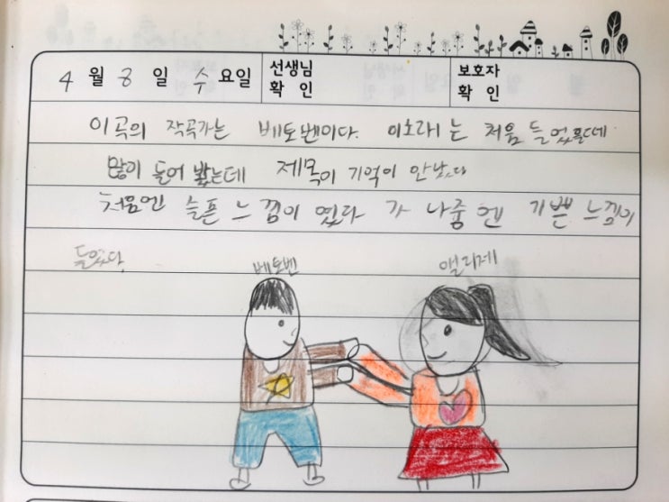 안녕하세요^^ 강동구 고덕동 라라음악학원입니다. 라라에서는 아이들이 다양한 음악을 접하면서 그에 대한 자신의 느낌을 발견하고 표현력을 기를 수 있도록 음악 감상 수업을 진행하고 있어요. <지난 감상 수업> 오늘은 모차르트처럼 오스트리아에서 활발하게 음악 활동을 했던 독일 작곡가 베토벤의 음악을 감상했어요. 이 곡은 처음 시작되는 9개의 계이름이 다 연주되기도 전에 "아, 이곡!!" 하고 말하게 될 만큼 유명한 곡이에요. 1810년 4월 27일, 마흔 살의 루트비히 판 베토벤은 점점 악화되는 청력 속에서도 깊은 내면의 음악을 이어가고 있었어요. 그 가운데 탄생한 곡이 바로 오늘의 감상곡입니다. 애틋한 단조와 스....... <img src="https://blogthumb.pstatic.net/MjAyNjA0MDhfMjI1/MDAxNzc1NjQ0NDEzNDcy.tM1JKDhn1vmc1cFXyrARhMl5nz8W53GycoVYO6cfpW8g.j6Cx4Nkpb05QewEBdIacGyKqbB5vurpz6--X-TZAR3Qg.JPEG/900%A3%DF1775644354429.jpg?type=s3" />
