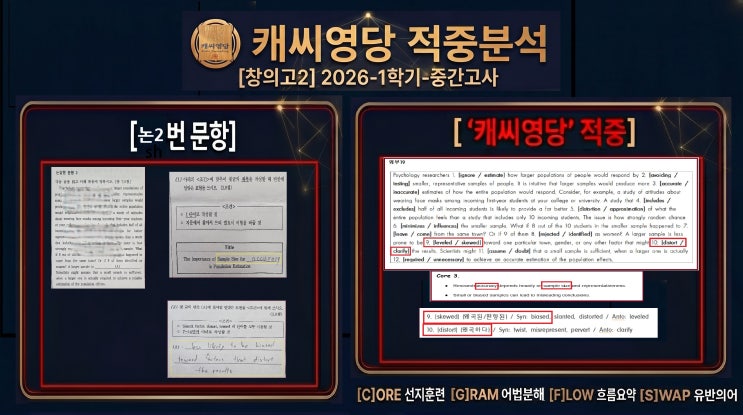 텝스1등급 & 토익RC만점 강사가 전하는 창의고2,3학년 영어 내신 총평 및 5학기 연속 적중 분석