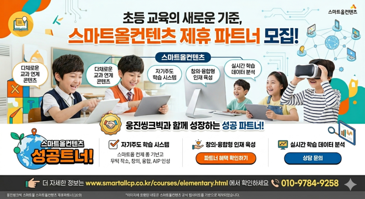 초등 교육의 새로운 기준, 스마트올콘텐츠 제휴 파트너 모집!