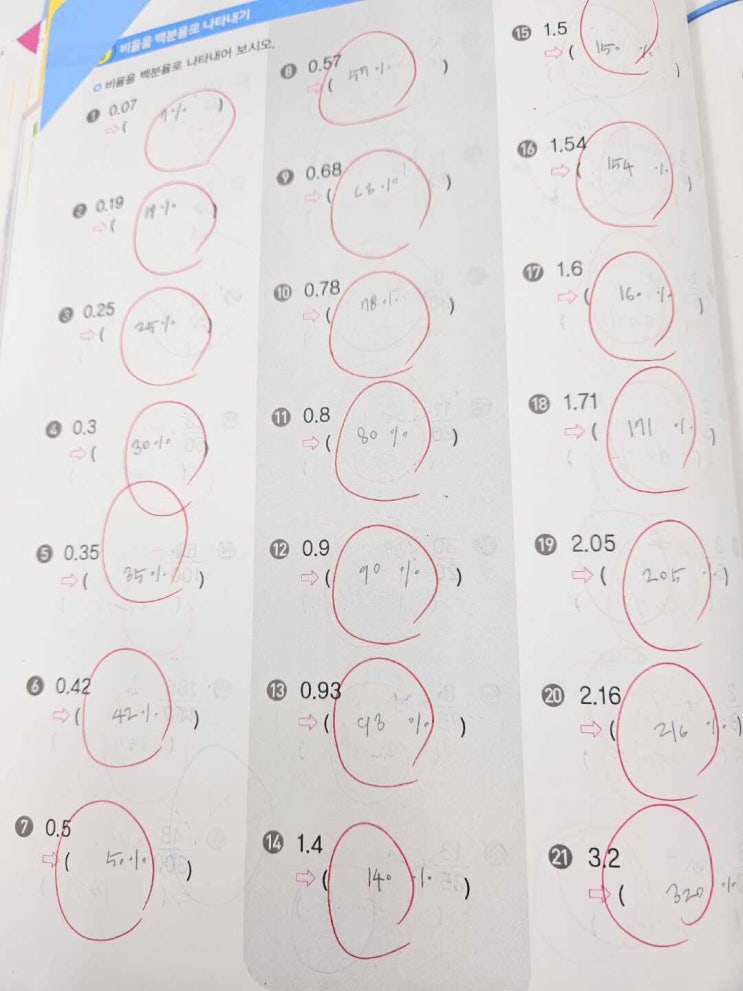(박*율) 초등6-1 수학리더 개념 + 개념플러스연산 라이트 4단원 비와비율 학습기록