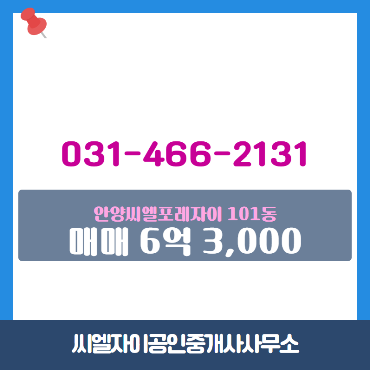 안녕하세요 다양한 매물을 보유한 공인중개 사무소입니다. 고객의 희망 조건에 맞는 매물을 신속하게 확인하고 안내해 드립니다. 씨엘자이공인중개사사무소 오시는 길 위치 : 경기도 안양시 만안구 안양6동 1416 근린생활시설2동 103호(안양동,안양씨엘포레자이) 씨엘자이공인중개사사무소의 위치는 이곳 입니다. 오늘 소개할 매물은 안양동 안양씨엘포레자이 101동 매매 매물로 금액은 6억 3,000입니다. 더 자세한 정보는 아래 표를⬇ 참고해 주세요. 평면도 기본형 확장형 안양씨엘포레자이의 배정학교는 안양초등학교 입니다. 더 많은 매물을 한꺼번에 보시려면 공인중개사법 개정에 대한 표시의무 사항 명시 공인....... <img src="https://blogthumb.pstatic.net/MjAyNjA0MjlfMTgy/MDAxNzc3NDQ4MzE3Mzg3.W3KKpQ6M6fkPshDGC6f5L5P3u-WmMVab41xn8KwzJlkg.fPb5gFnNs6zRMEvMCoTXqI3Ms0xeaYG6TDCTk1lxS7wg.PNG/e4549349-ad13-43eb-be1d-b7d0efb9347d.png?type=s3" />