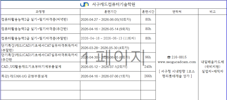 서구캐드컴퓨터기술학원 5월 개강과정