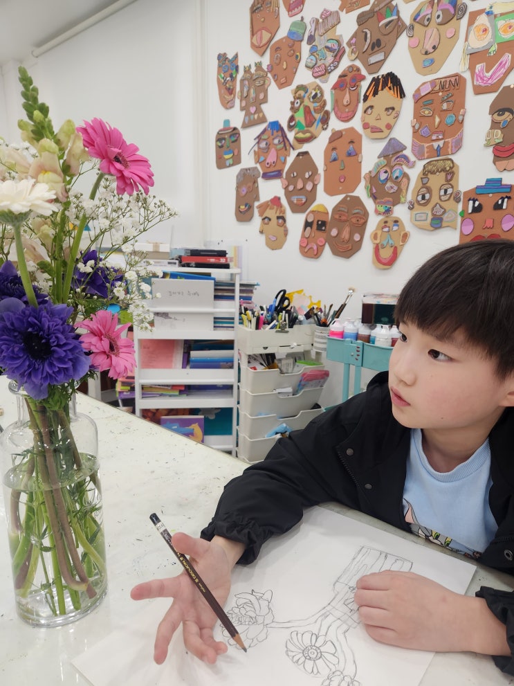 어느새 따스한 기운이 물씬~~ 길 가에 날리는 벚꽃잎에~~ 봄이 왔나봐요~~ 이번주는 꽃을 직접 관찰하고 집중해서 내가 보고 느끼는 대로 표현해보는 시간을 가졌어요. 정해진 결과물을 없어요. 같은 꽃을 바라본다고 그 모양이 다 똑같진 않아요. 실물과 똑같을 필요는 더더욱 없고.. 내 감각대로 표현해주면 된답니다. ❤️ 우리 친구들 한명 한명 내 손으로 완성한 작품들 너무 소중하고 멋지죠~ 꽃보다 더 예쁜 우리 친구들 쌤이 많이많이 사랑해~~❤️ <img src="https://blogthumb.pstatic.net/MjAyNjA0MTJfMzAw/MDAxNzc1OTk0NDA1ODQz.s_jUoC2t6mWWVpLnSncJkqObwjfCosivL7VFxp9PVbsg.gZp2OEi-8ZYjHJm71SfHjJ7ZimngMuO93ImYxCIibQQg.JPEG/20260330_151507.jpg?type=s3" />