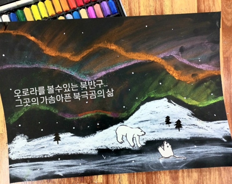 아름다운지구가 아파요. 지구를 우리가 지켜요 ❄️ 오로라 그 찬란함 우리친구들 함께 오로라가 생성되는 원인을 알아보고 북반구와 남반구에서 관찰가능한 오로라를 파스텔이런 재료를 활용해서 표현해 보았어요. 거기에 요즘 기후위기로 더위지는 지구.. 북극공들의 삶의 무너진 상황을 표현해보며 그냥 아름답게만 가리고 끝나는 미술이 아닌 생각과 사고력 확장수업우로 진행해본 수업이었어요. 빛그림미술교습소 #대구미술 #시지미술 #욱수초미술 #신매초미술 <img src="https://blogthumb.pstatic.net/MjAyNjA0MTRfMjQ3/MDAxNzc2MTc2NDAwMDcw.nd80xOx34Qcykl62MGPO2px5KIm6Bd0xzqW0gzoq9aEg.scr9iMUKyRGzLFMYTHK3EF68AHpRBBOcL6UedQXMYXYg.JPEG/900_IMG_20260126_224636_452.jpg?type=s3" />