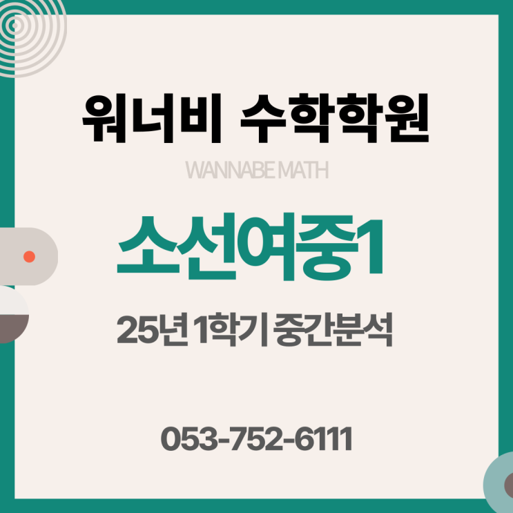 중학교 입학 후 처음으로 치르는 중간고사는 학생과 학부모 모두에게 큰 긴장감과 당혹감을 안겨줍니다. 특히 수학은 학습 성취도가 가장 냉정하게 드러나는 과목이기에 시험 종료 후 점수만으로 안도하거나 실망하기 쉽습니다. 그러나 우리는 점수 그 너머를 보아야 합니다. 학교의 출제 경향을 정밀하게 분석하고 데이터 속에 숨겨진 메시지를 읽어내는 것만이 중간고사에서 높은 점수를 받을 수 있는 유일한 길입니다. 오늘은 소선여중 1학년 수학 시험 데이터를 통해 성적 향상을 위한 실질적인 학습 로드맵을 제시합니다. 25년 소선여중 1학년 1학기 중간 수학 시험의 학업 성취도 데이터 (중간+기말+수행)를 분석한 결과 상위권 경쟁이 매....... <img src="https://blogthumb.pstatic.net/MjAyNjA0MTZfMTc3/MDAxNzc2MzMzMjU4MjEx.03WUBVvetr8BE-xRYrGV7qbSbXxwKTim4830wGuLj_Qg.ZSBye7uPNhTN5BWjF1mTYGJEfxiCdDzhCybKYghV6cwg.PNG/001.png?type=s3" />