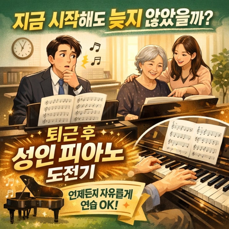 “피아노 배우고 싶다는 생각, 몇 년째 미루고 계신가요?” "어릴 때 그만두지 말걸…" "지금 시작하기엔 너무 늦은 거 아닐까?" "악보도 잘 모르는데 따라갈 수 있을까?" 직장 생활, 육아, 학업에 치이다 보면 피아노는 늘 '나중에'로 밀려납니다. 그런데 캐슬음악학원을 찾아오시는 분들 모두 처음엔 똑같은 걱정을 안고 오세요 . 그리고 한 달이 지나면 한결같이 이렇게 말씀하십니다. "더 일찍 시작할 걸 그랬어요. 생각보다 훨씬 재미있고, 선생님이 제 수준에 딱 맞게 가르쳐 주세요." — 캐슬음악학원 성인 수강생 실제 후기 실제 수강 사례 퇴근 후 매일 피아노 앞에 앉게 된 직장인....... <img src="https://blogthumb.pstatic.net/MjAyNjA0MjBfODUg/MDAxNzc2NjcxNDYzNDIz.oJe2lEKS6YCIg717ZjUHhr7NWYS4_7B6BE5n18yhtlwg.6YEcBNrJ50vjx9pJSj1PIJiTYtA9nfMtYbFIOm6_5vkg.JPEG/66ED9585%A3%AD83A5%A3%AD4436%A3%AD999E%A3%ADFB380DA5071B.jpg?type=s3" />