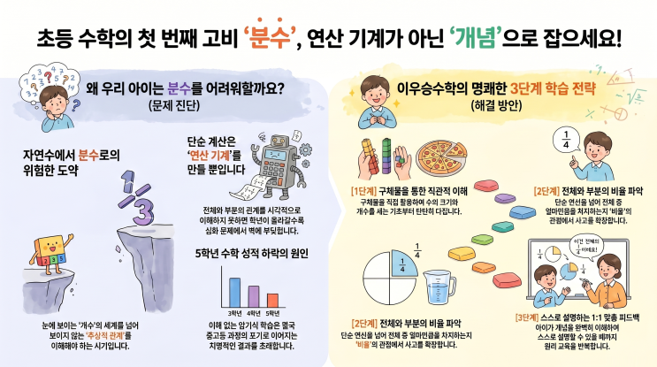 99% 학부모가 놓치는 초등 분수의 함정, 화원 수학학원 이우승수학의 1가지 해법