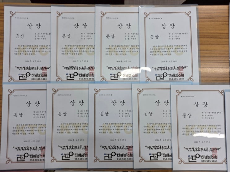 경시대회 수상 학생들 축하합니다! 이번 경시대회에서 좋은 결과를 얻은 학생들 모두 진심으로 축하합니다. 열심히 노력한 과정이 멋진 결과로 이어져 더욱 값진 성과입니다. 정말 자랑스럽습니다 하지만 이번에 아쉽게 수상을 하지 못한 학생들도 너무 실망하지 않았으면 합니다. 경시대회는 결과보다 도전하는 과정 자체가 큰 성장입니다. 문제를 고민하고 끝까지 노력했던 경험은 분명 다음 도전에서 더 좋은 결과로 이어질 거예요 도전한 모든 학생들이 이미 한 단계 성장했습니다. 앞으로도 꾸준히 노력해서 더 멋진 모습 기대하겠습니다 더배움수학학원은 모든 학생들의 도전을 항상 응원합니다! <img src="https://blogthumb.pstatic.net/MjAyNjA0MTdfMTE1/MDAxNzc2Mzk5NTYxNjI4.6JMadH9klr1H8zX3477dYPPn8CWTmwLlE4unKsFIuS8g.JP2TR-Sj2oHJREIYs0sDhK5NVZ-ixs11SFg7RPAbDYIg.JPEG/900%A3%DF20260417%A3%DF125006.jpg?type=s3" />